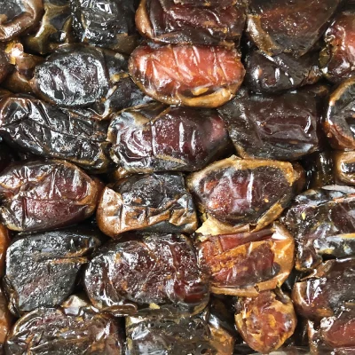 رطب باکیفیت، بافتی نرم و لطیف دارد. این بافت آبدار دارای پوستی طبیعی و یکنواخت مشکی یا قهوهای روشن است. بوی آن شیرین و ملایم بوده و لکه غیرعادی ندارد.